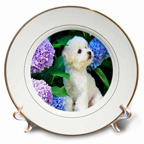 CP 80886フローレン犬??Adorable Bichon Frise Puppy Among Hydrangeas??プレート 8 inch Porcel