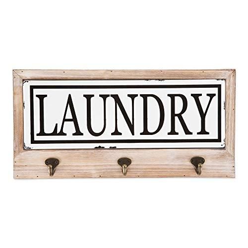 DII Vintage Farmhouse Style Tiled Sign with Hooks Laundry