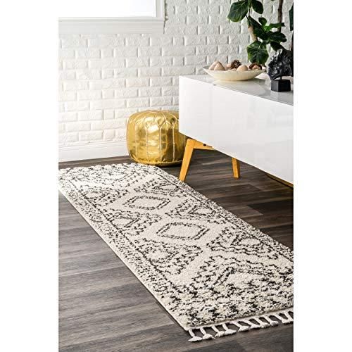 nuLOOM Vasiliki モロッコ トライバル シャグ エリアラグ 2フィート 6インチ x 10フィート オフホワイト
