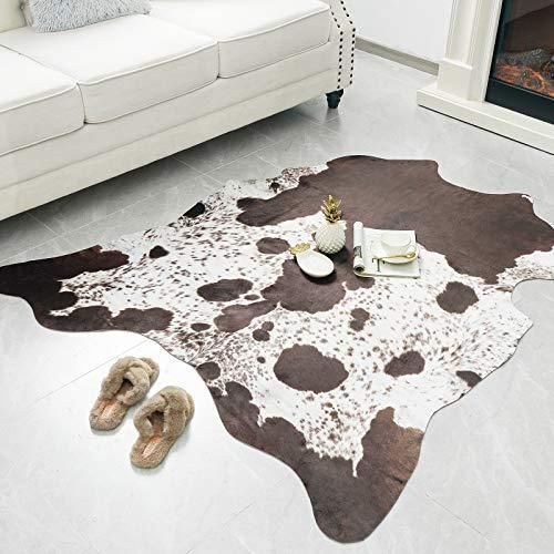 Rostyle フェイクカウハイドラグ キュートなカウハイドラグ リビングルーム 寝室 ウエスタンホームインテリア フェイクファー 牛プリントラグ 白と茶色 4