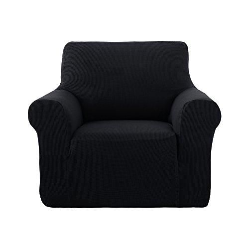 DeconovoジャカードストレッチソリッドカラースモールチェックソファーカバースパンデックスポリエステルソファSlipcoverのソファ Chair ブラック