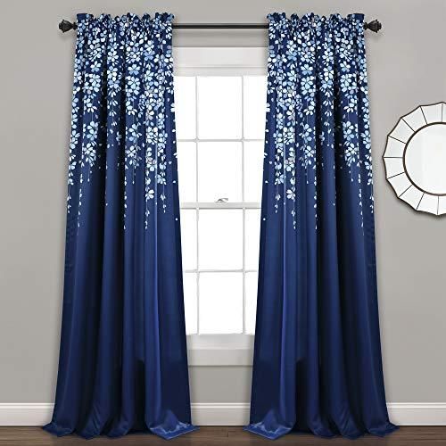 Lush Decor Navy Weeping Flowers Room Darkening Window Panel Curtain Set Pair 95”