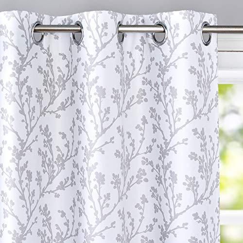 DriftAway Sarah フローラルツリーブランチパターン 遮光断熱ウィンドウカーテン グロメット 2層 2パネル 52インチ×84インチ グレー