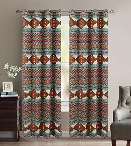 ラグ 4 Less 南西部ネイティブアメリカン トライバル ユタ州 Thermal Curtain Set ブルー