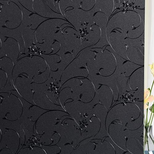 Mikomer Etched Flowers Total Blackout Privacy Window Film100% Light Blocking Gla