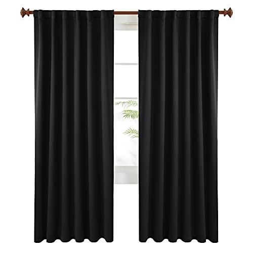 Deconovo 遮光カーテン 寝室用 無地 バックタブ ロッドポケット 2パネル 52W x 84L Inch ブラック FBA_CT0163-2D