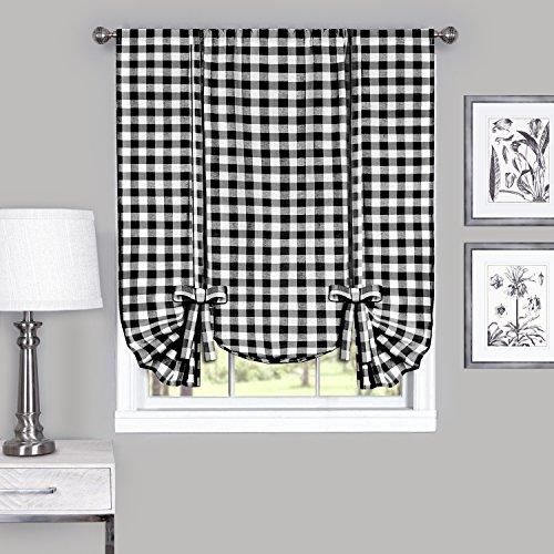 AchimバッファローチェックウィンドウカーテンTie Up Shade ブラック BCTU63BW12