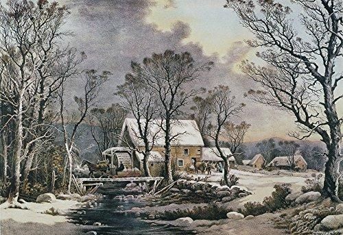 Currier & Ives 冬の景色 NWinter In The Country The Old Grist Mill Lithograph 1864 Cu