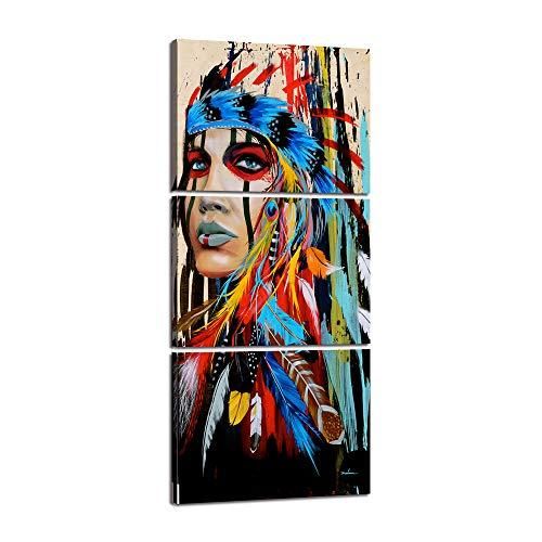 Yatsen ブリッジ ウルフ インディアンアメリカ絵画 3枚 縦型 16''Wx36''H