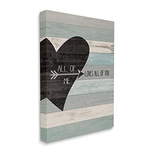 Stupell Home D?cor All of Me Loves All Of You アンティーク調ハート枠張りキャンバスウォールアート、16 x 1.5