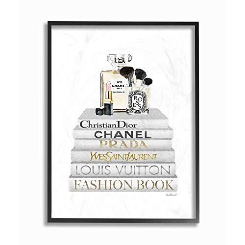 Stupell Industries Fashioner メイクアップ ブックスタック ホワイトゴールド 水彩画 アーティストアマンダ グリーンウッド ウォール