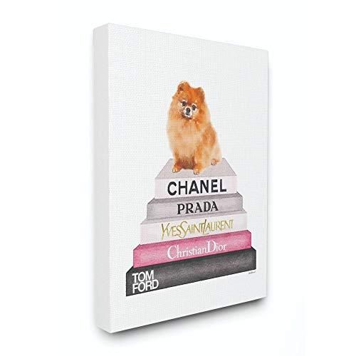 Stupell Industries 水彩画ハイファッションブックスタック ポメラニアン犬 キャンバスウォールアート 16 x 20インチ アーティストアマンダ