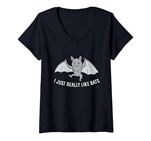 Womens Funny Bats I Just Really Like Bats Ok Funny Bats V-Neck T-Shirt