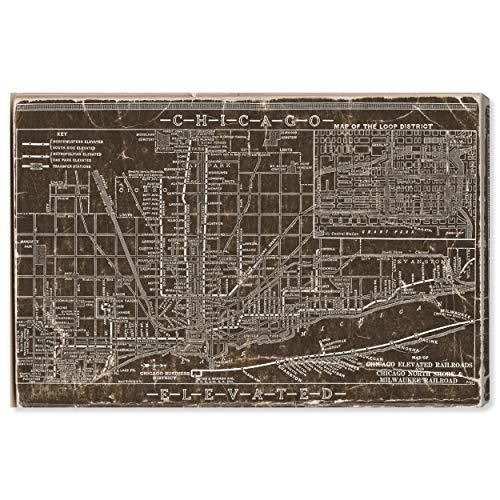 The Oliver Gal Artist Co. Wall Art Canvas Prints 'Chicago Railroad Map Leather'