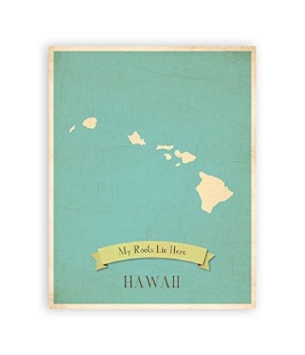 My RootsハワイPersonalized壁マップ11?x 14、Kid 'sハワイマップ壁アート、子供のハワイヴィンテージ状態マップ、Hi壁アート印刷、保