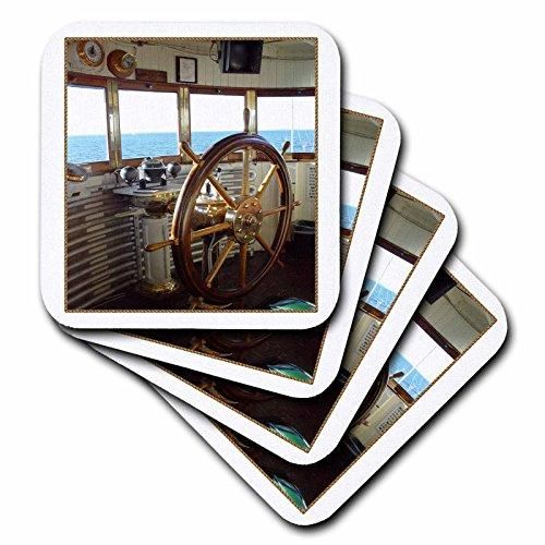 set-of-4-Soft - 3dRose cst_46602_1 Ships Wheel in Wheelhouse Soft Coasters Set o
