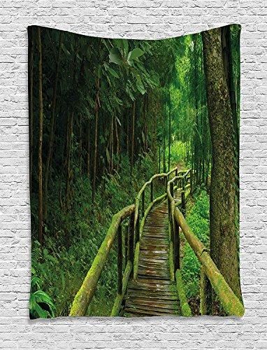 グリーンタペストリーby Ambesonne、風景景色Hilly Landscape with Lake and Blue Cloudy Sky Trees M