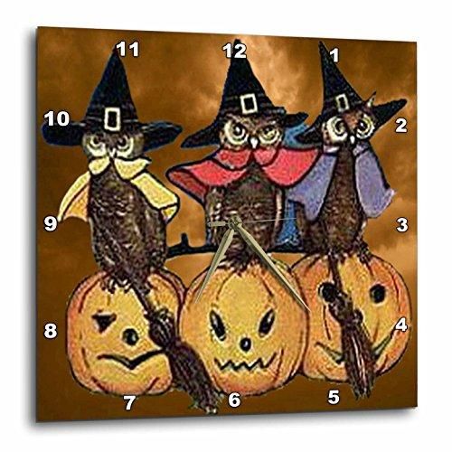 3dRose LLC Vintage Owls on Jack O Lanterns Wall Clock 10 by 10-Inch