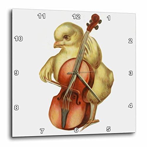 3dRose DPP_104606_2 バイオリンを演奏するビンテージ鳥 セロウォールクロック、13×13インチ