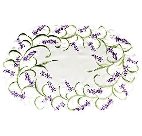 刺繍入りプレースマットドイリー ラベンダーライラックフラワー付き クリーム色 12 x 21インチ 洗濯機可