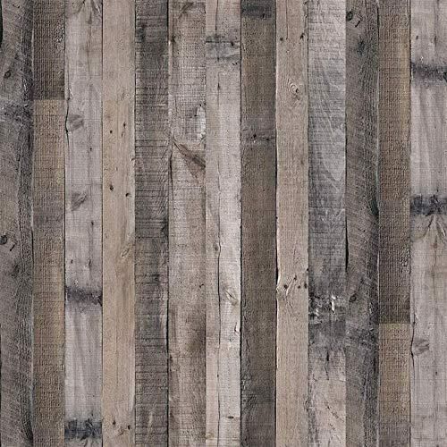 グレーウッド壁紙 ウッドピールアンドスティック壁紙 17.7インチ x 196.8インチ フェイクウッド厚板紙 自己粘着 取り外し可能 壁装飾 再生木材風壁紙