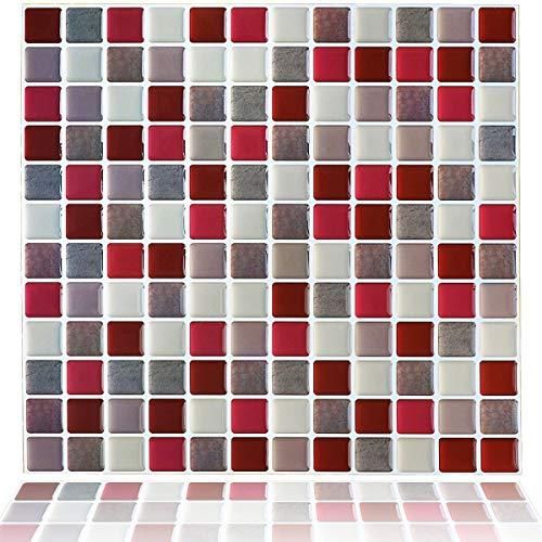 3Dモザイクタイルステッカー 取り外し可能壁紙タイル レッド 3D 自己粘着壁タイル バスルームの壁タイル キッチンバックスプラッシュレッド PVC正方形装飾ビ