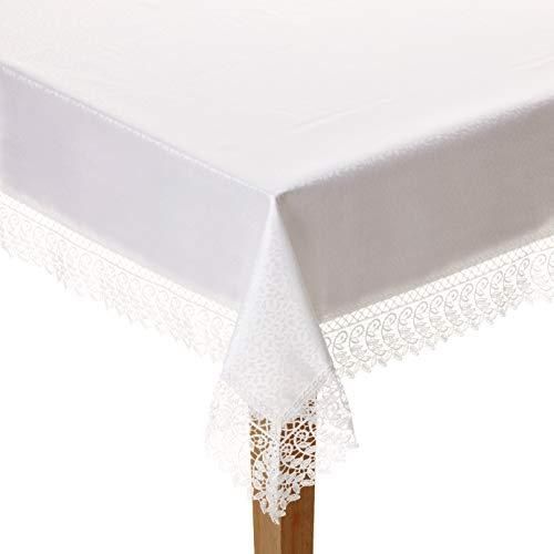 Violet Linen Legacy Cobblestone Design マクラメレースボーダーテーブルクロス 70インチ X 144インチ ホワイト