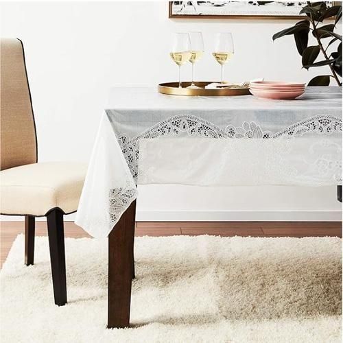 Violet Linen ビニールレース バテンバーグ フローラルデザイン テーブルクロス 60インチ x 104インチ ホワイト
