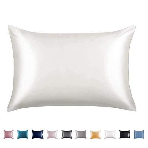 Adubor マルベリーシルク100%枕カバー 髪と肌用 隠しファスナー付き 両面23匁シルク 600スレッドカウント 20x26インチ 標準サイズ アイボリー