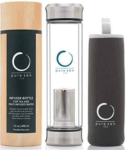Pure Zen Tea Tumbler with Infuser - BPA Free Double Wall Glass Travel Tea Mug wi
