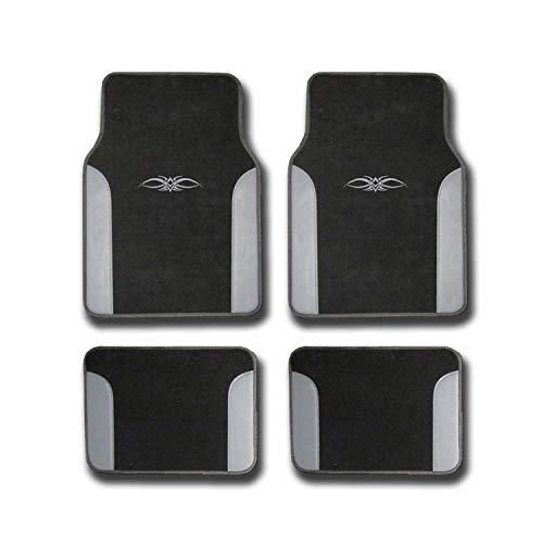 トライバルタトゥーデザイン カーフロアマット 2トーン ユニバーサルカーペット ビニール 4枚 車 トラック グレイ FM-709
