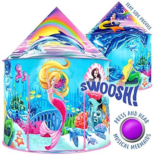 W&O Musical Mermaid Tent with Under-The-Sea Button Mermaid Gifts for Girls Magic