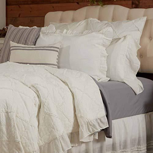 Kathryn クイーンキルトベッドスプレッド 90インチ x 90インチ ソフトホワイトリネンのような質感の生地 手縫いマイクロフリルのキルト ヴィンテージフ