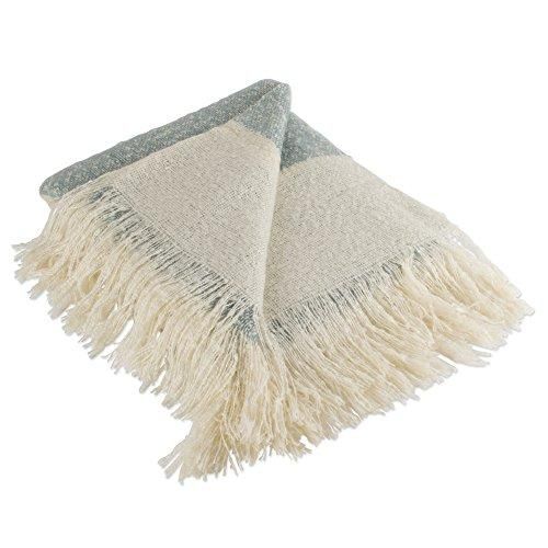 DII ラグビーストライプ織糸 100%アクリル 装飾フリンジ付き 50 x 60インチ ブルー