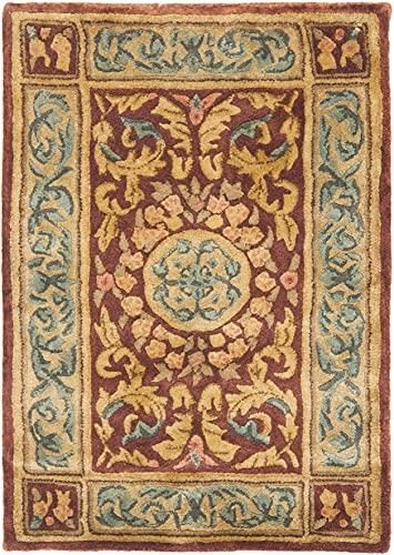 Safavieh Empire Collection EM421A手作りのブルゴーニュとゴールドウールエリアラグ、2フィートx 3フィート2 '×3'