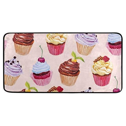 キッチンラグ 水彩 カップケーキデザイン ノンスリップ ソフト キッチンマット バスラグ ランナー ドアマット カーペット ホームデコ用 39インチ x 20イ