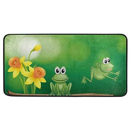 キッチンラグ グリーンフロッグデザイン ノンスリップソフトキッチンマット バスラグ ランナードアマット カーペット 室内装飾 39インチ X 20インチ