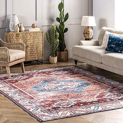 nuLOOM Marli Machine Washable Faded Medallion Area Rug 4' x 6' Rust