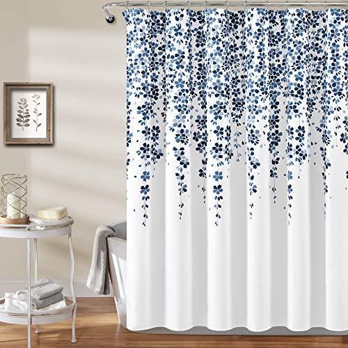 Lush Decor しだれ花 シャワーカーテン - ファブリックフローラル蔓プリントデザイン 72インチ x 72インチ ネイビーとブルー