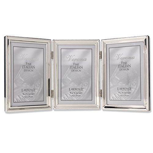 Lawrence Frames 光沢シルバープレート 4x6 ヒンジ付きトリプル写真フレーム - ビーズボーダーデザイン
