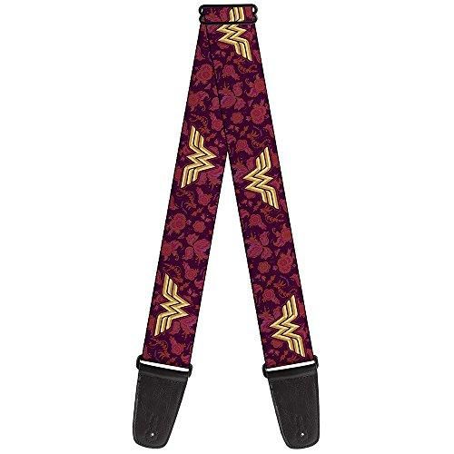 Buckle-Down Guitar Strap Wonder Woman Logo Floral Collage Purple Pinks Gold 2 In
