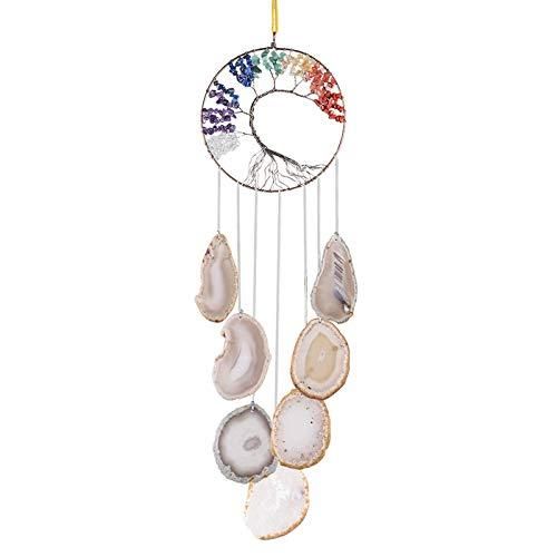Amogeeli 7チャクラ クリスタル 生命の樹 メノウ ストーン スライス ハンギングオーナメント ウェディング 瞑想用