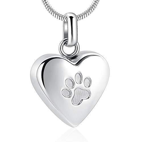 zeqingjw ペットの遺灰用ジュエリー ペンダント 足跡プリント ペットハート骨壺ネックレス メモリアル形見ジュエリー ペット/犬/猫の遺灰用 シルバー