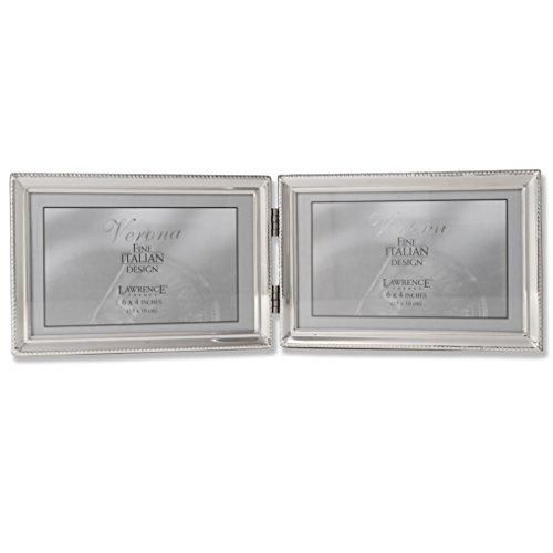 ローレンスフレームPolishedシルバープレート4?x 6ヒンジダブル水平画像フレーム??ビーズボーダーデザイン