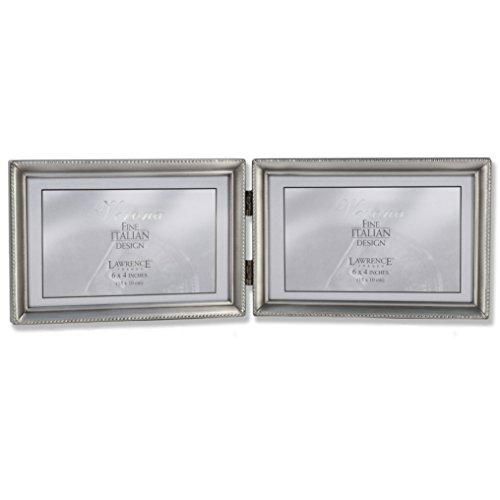 Lawrence Frames アンティークピューター 4x6 ヒンジ付きダブル水平写真フレーム ビーズボーダーデザイン
