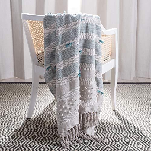 Safavieh Home Billi Whimsy Beige and Teal Fringe Throw Blanket Beige/Teal 50 x 6
