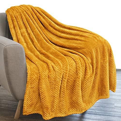 PAVILIA ワッフルテクスチャフリーススローブランケット ソファ用 マスタードイエロー ソフトプラッシュベルベットフランネルブランケット リビングルーム用