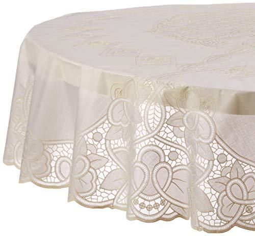Vinyl Lace Betenburg Design Tablecloth Beige 72 Round by Violet Linen 品