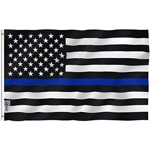 ANLEYフライブリーズ3x5フィートの細いブルーのラインアメリカの旗-鮮やかな色と耐UVフェード-キャンバスヘッダーとダブルステッチ-法執行官に真鍮のグロメッ