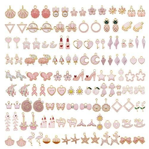 60個 30ペア ミックス エナメル ピンク テーマ チャーム ペンダント ジュエリー作成用 バルクロット ネックレス イヤリング ブレスレット クラフト材料
